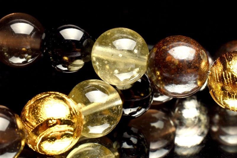 【1点物】贅沢◇宇宙のパワー MIX隕石(アルタイ隕石+黒隕石+リビアングラス+コンドライト隕石) 10-10.5mm ブレスレット _MA6070