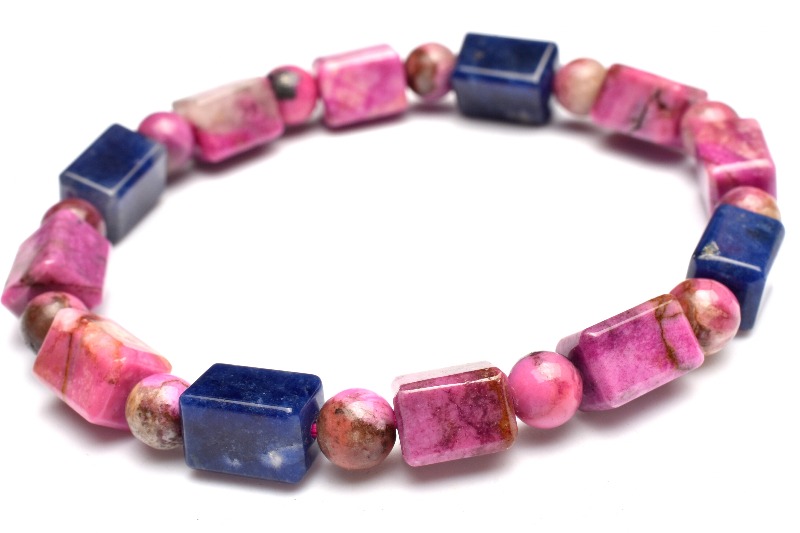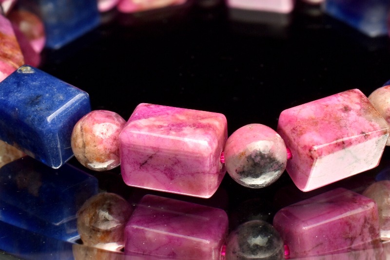 【1点物】5A級☆希少高発色 コバルトドロマイト(コバルトカルサイト)&ソーダライト 9-10x6.5-7(丸玉6)mm チューブカット ブレスレット _MA6078