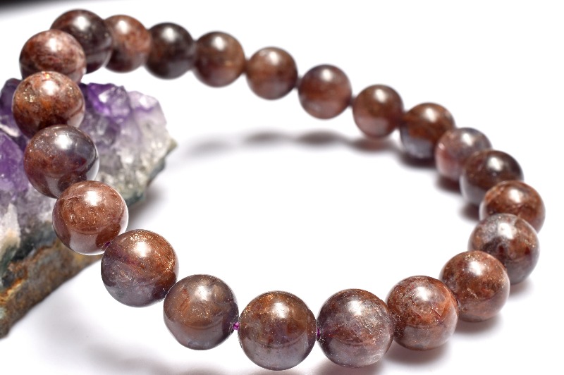 【1点物】AA☆ブラッドショット内包! アイオライトサンストーン 8.5mm ブレスレット _MA6085
