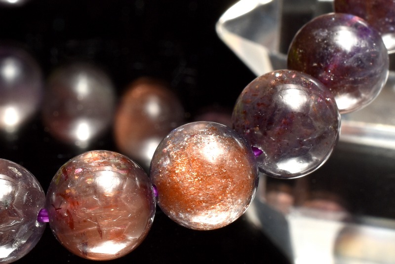 アイオライトから放つレピドクロサイトの輝きがとても眩しく綺羅びやか。
