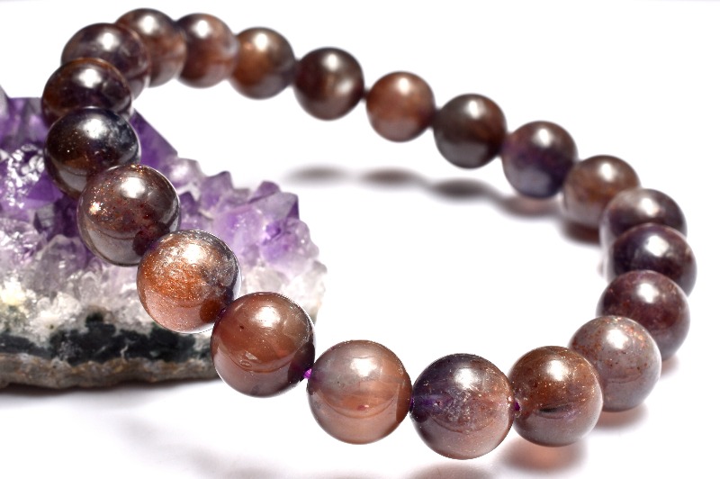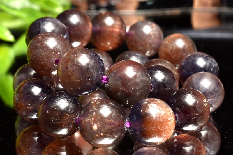 【1点物】AA☆ブラッドショット内包! アイオライトサンストーン 9mm ブレスレット _MA6089