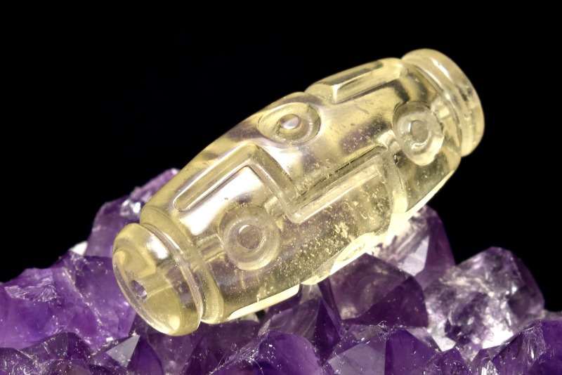 【1点物】AAA激レア☆透明レモンカラー リビアングラス 25x11mm 九眼天珠 ビーズ _PC4737