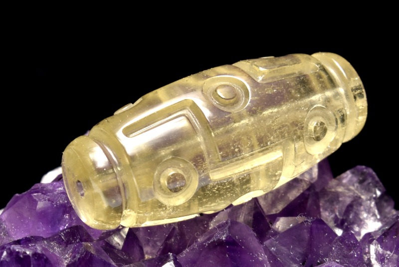 【1点物】AAA激レア☆透明レモンカラー リビアングラス 28x12mm 九眼天珠 ビーズ _PC4741