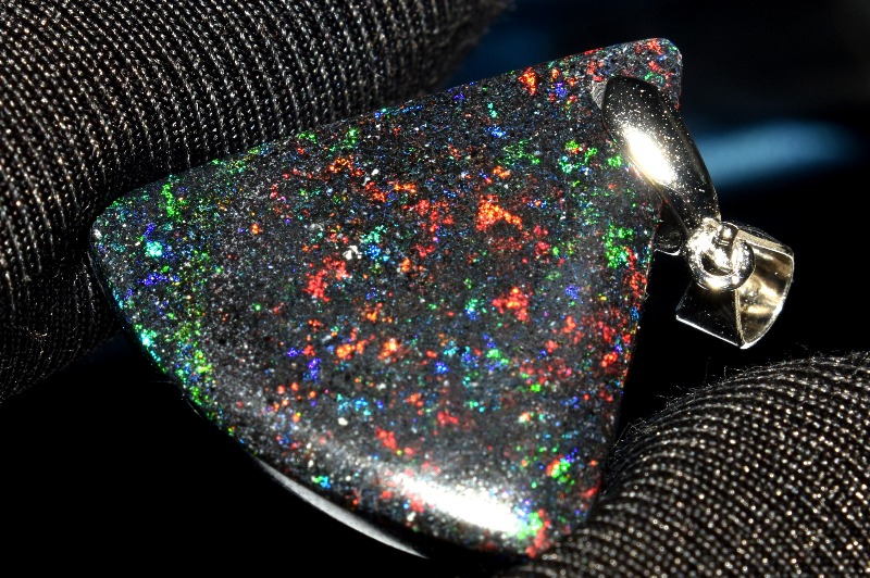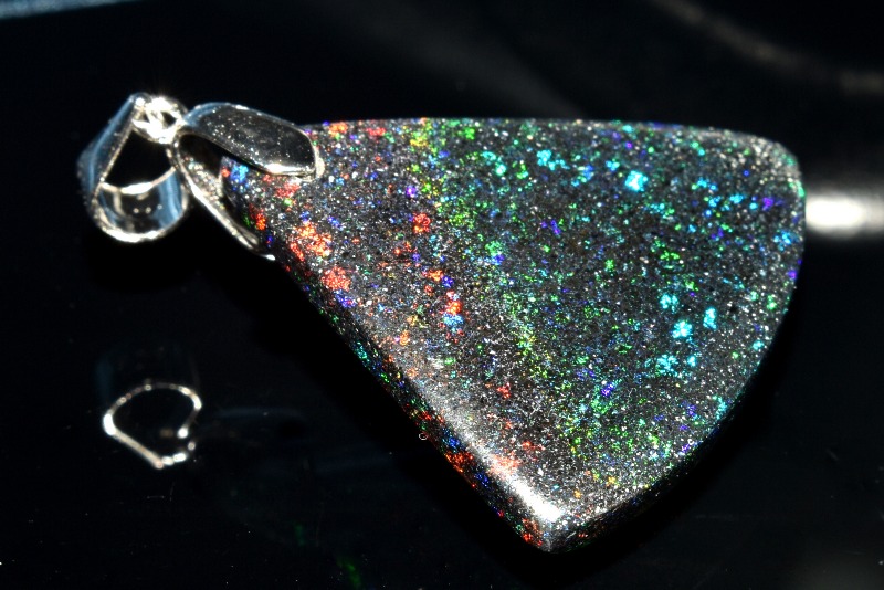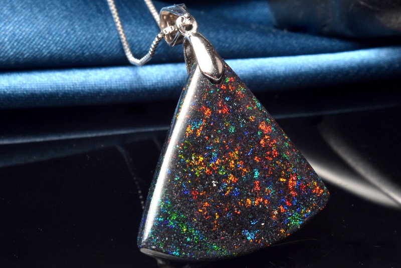 肉眼でも遊色は見られますが、強い光に当てると、まるで宇宙を見ているかのようにキラキラと煌めく美しいタイプ。