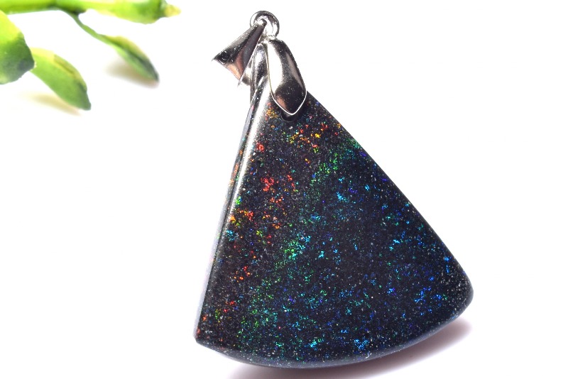 【1点物】Silver925◇遊色効果 ブラックマトリックスオパール 24x24mm トライアングル ペンダントトップ _PC4774