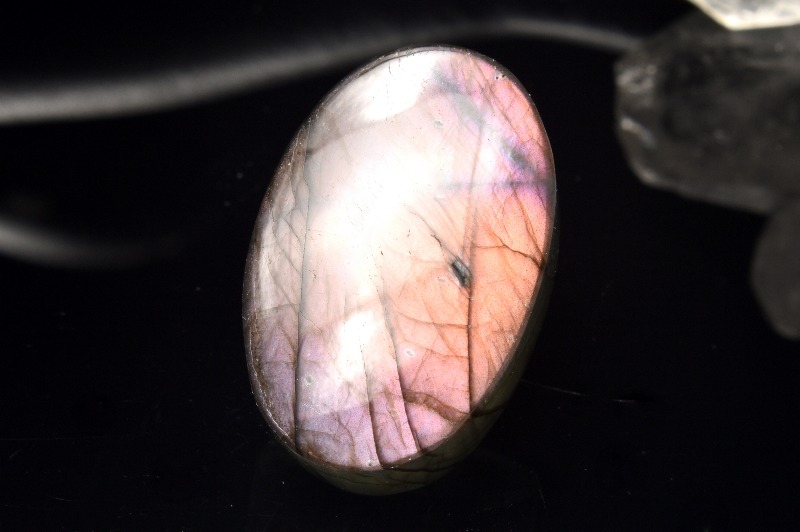 ラブラドライトの特色は、なんと言ってもその美しい閃光です。冷たそうでいて、非常に深みのある光は「ラブラドレッセンス(ラブラド光線)」と呼ばれます。