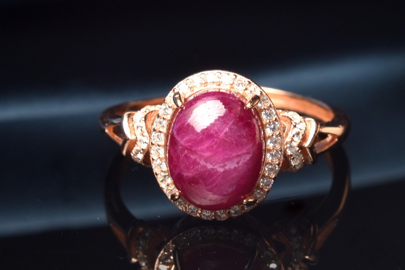 ルビーは、コランダムという鉱物のグループのダイヤモンド(硬度10)の次に硬い鉱物(硬度9)で、赤いものをルビー、青いものをサファイアと呼びます。