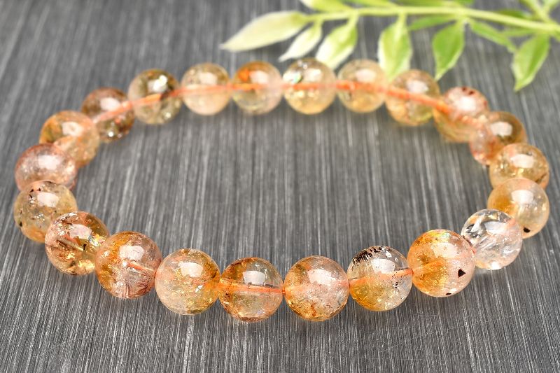 【1点物】希少共生 カコクセナイトインシトリン(ゲーサイト) 9.5mm ブレスレット _U6934