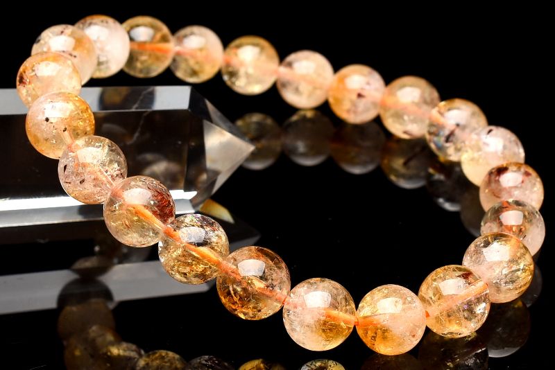 【1点物】希少共生 カコクセナイトインシトリン(ゲーサイト) 9.5mm ブレスレット _U6937