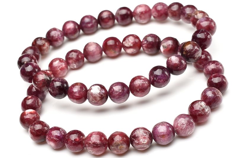 雲母の輝き レッドパープルマイカ(レピドライト) 9.5mm ブレスレット 1個売り _B1449-95