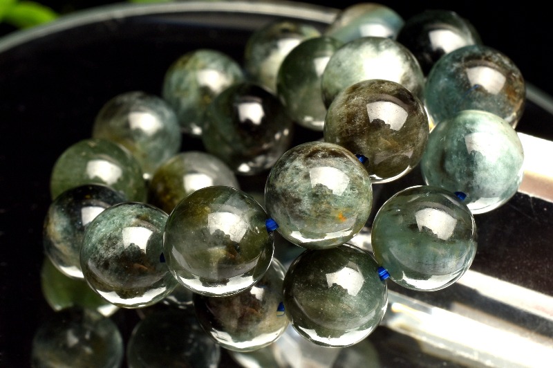【1点物】希少トルマリン共生◇非加熱 アクアマリン 9mm ブレスレット _MA6165
