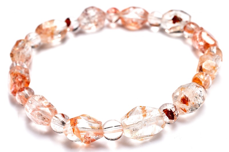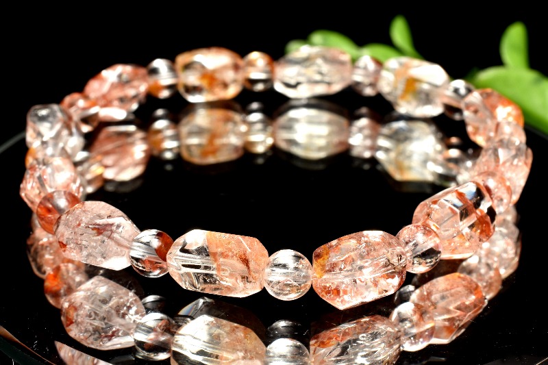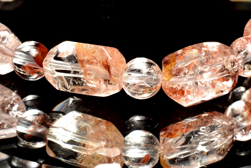 【1点物】高発色◇クリア錦鯉 ライモナイトインクォーツ 11.5-15x6.5-9.5(丸玉5.5)mm 原石ラフカット ブレスレット _MA6296