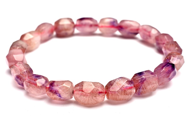 【1点物】美しいカラー ピンクスーパーセブンアメジスト 9-11.5x6-8.5mm 原石ラフカット ブレスレット _MA6340