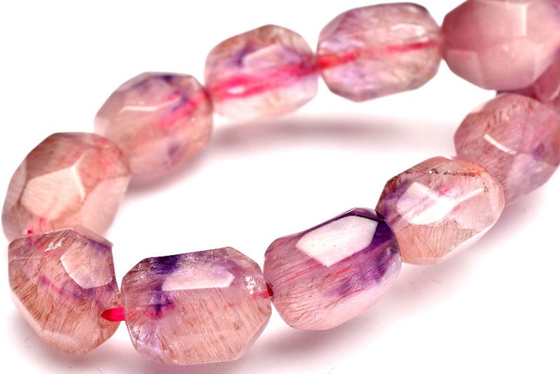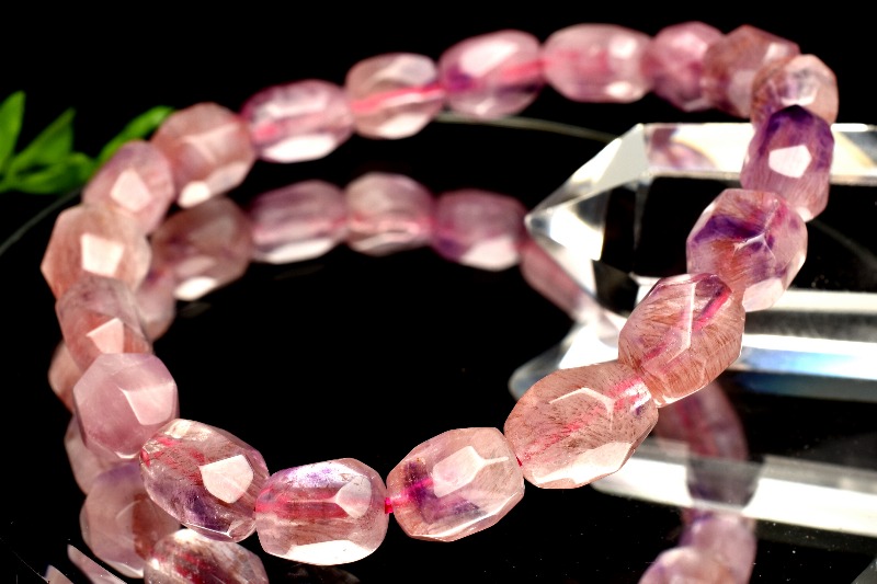 パワーストーンの定番アメジストに、細かなゲーサイトやレピドクロサイトが入っているアメジストスーパーセブンです。
