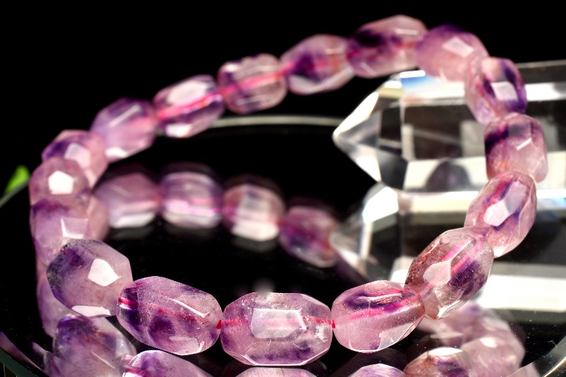 パワーストーンの定番アメジストに、細かなゲーサイトやレピドクロサイトが入っているアメジストスーパーセブンです。