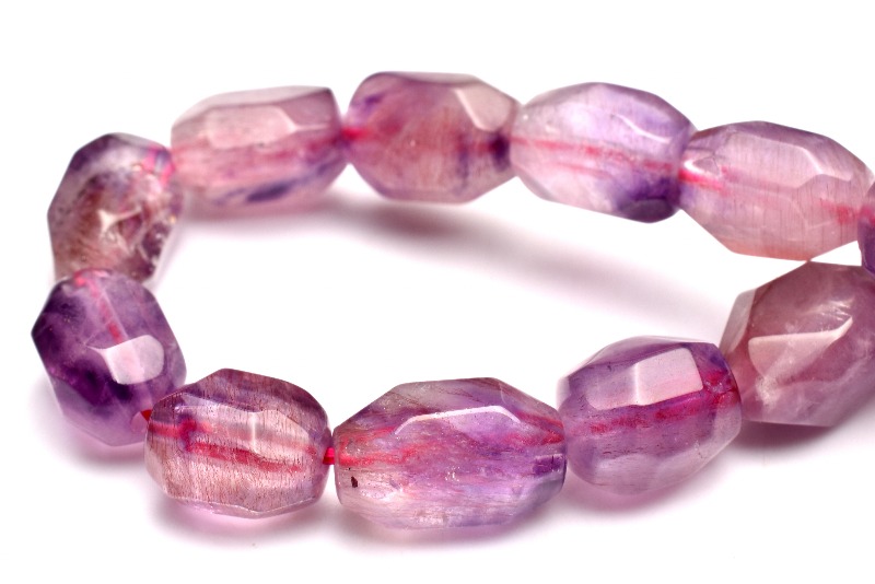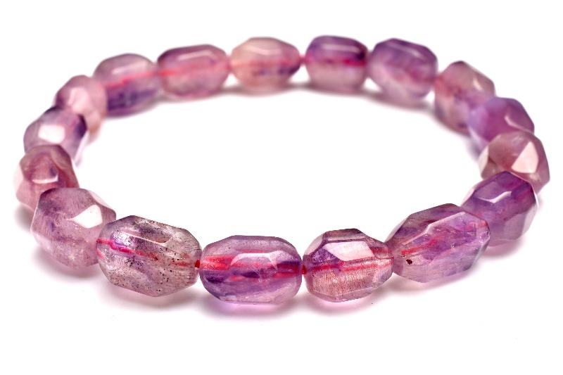 【1点物】美しいカラー ピンクスーパーセブンアメジスト 10.5-13.5x7.5-10mm 原石ラフカット ブレスレット _MA6344
