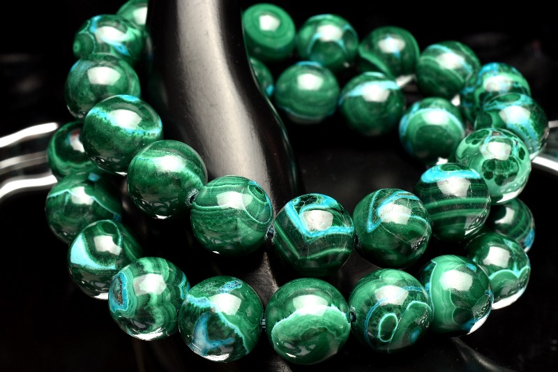 マラカイトの縞模様がくっきりと浮かび、中には天眼模様のなった珠もございます。
