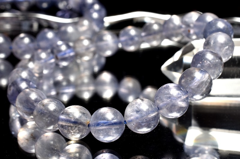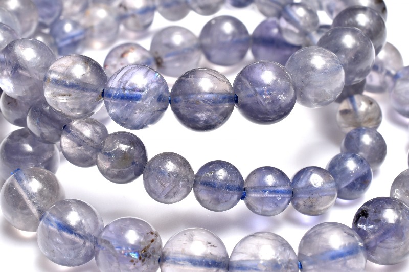 アイオライトの中にサンストーンのアベンチュレッセンスが輝いている珠もあり内包が魅力の鉱物です。