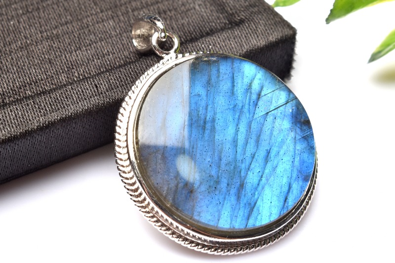 【1点物】Silver925◇幻想シラー ラブラドライト 23mm コイン ペンダントトップ _PC4960
