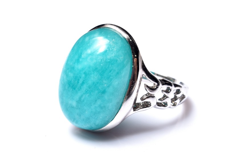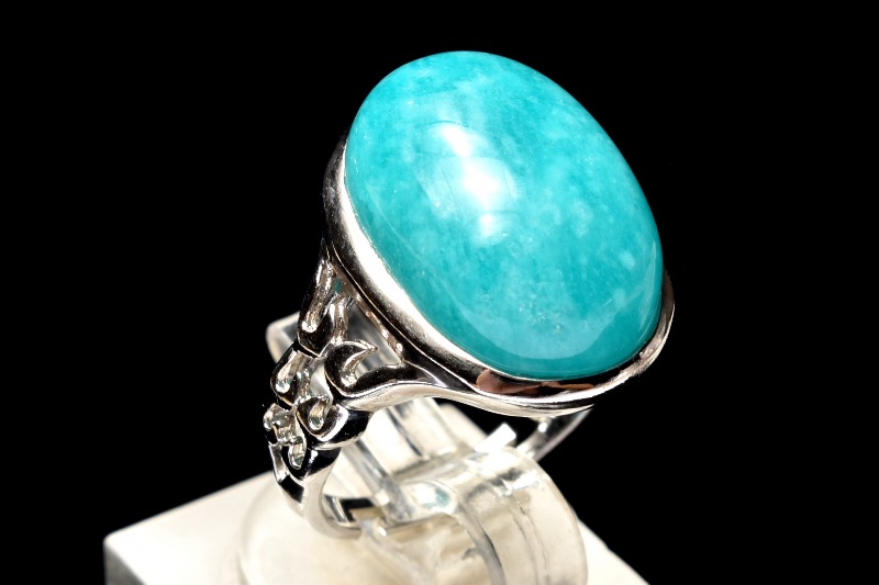 アマゾナイトのブルーとシルバー枠の相性が良く上品な印象の指輪です。