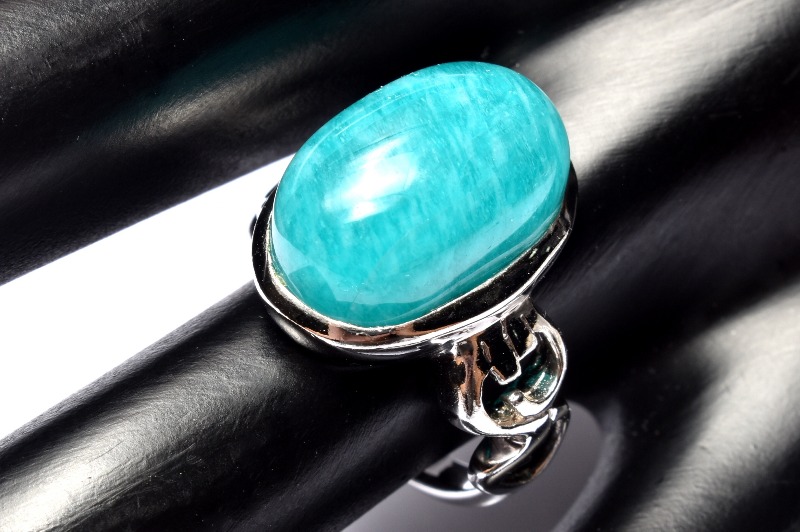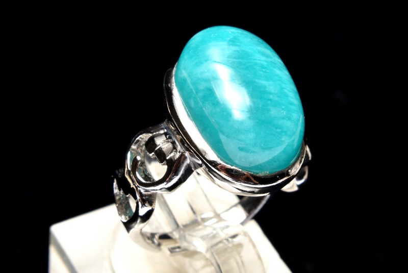 アマゾナイトのブルーとシルバー枠の相性が良く上品な印象の指輪です。