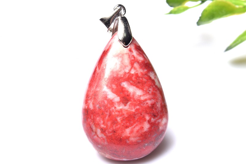 【1点物】Silver925◇希少レア シナバー辰砂 26x18mm ドロップ ペンダントトップ _PC4989