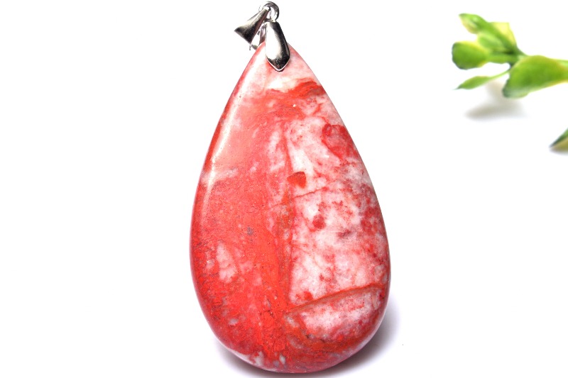 【1点物】Silver925◇希少レア シナバー辰砂 40x24mm ドロップ ペンダントトップ _PC4996