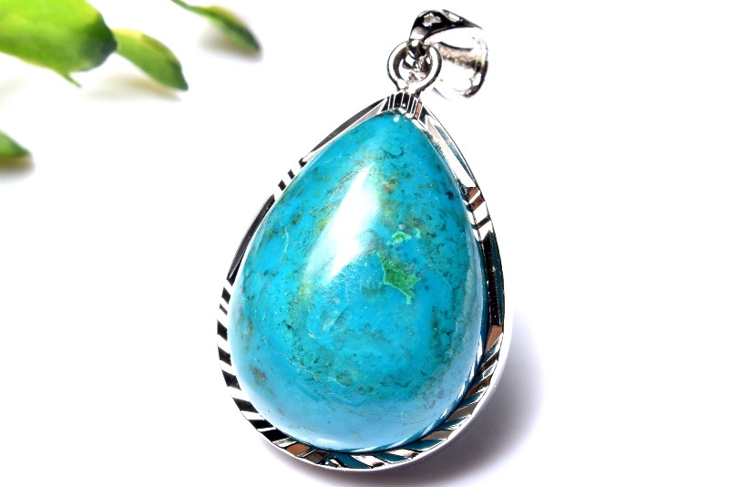 【1点物】Silver925◇ペルー産 クリソコラ 24x18mm ドロップ ペンダントトップ _PC5006