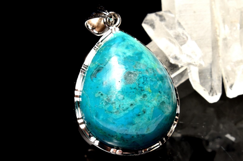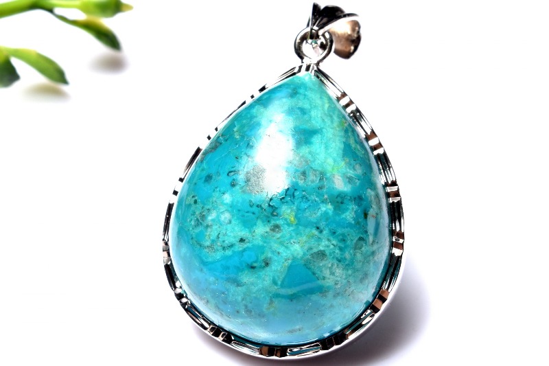 【1点物】Silver925◇ペルー産 クリソコラ 27x21mm ドロップ ペンダントトップ _PC5007