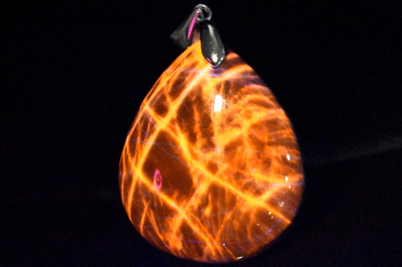 同じファトクロミズムの特徴をもつ石たちの中でも、ハックマナイトは紫外線を当ててから一定時間変色が持続するという珍しい性質があり、コレクターの間でも高い人気を誇ってます。