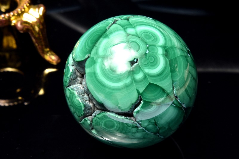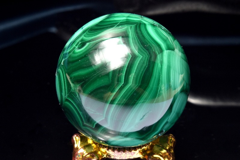 【1点物】高発色◇魔除け マラカイト孔雀石 29mm 丸玉(台座付き) スフィア _CG6426【宅急便のみ】