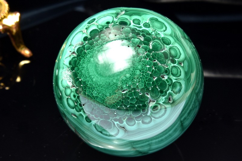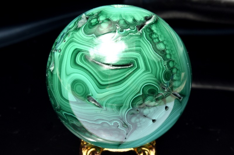 【1点物】高発色◇魔除け マラカイト孔雀石 41mm 丸玉(台座付き) スフィア _CG6430【宅急便のみ】