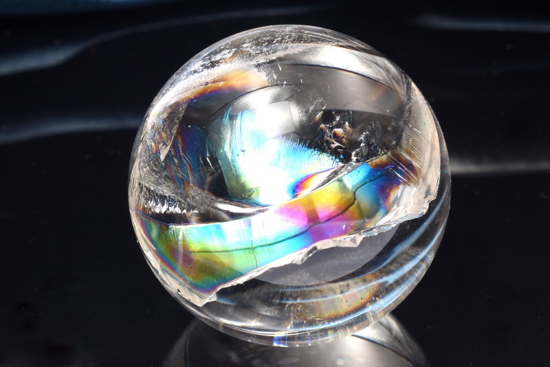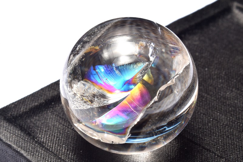 この美しい虹色がなぜ内包されたかというと、地殻の変動や外からの力が水晶に加わることで亀裂が生じ、それが虹色の分散光を放つためとされています。