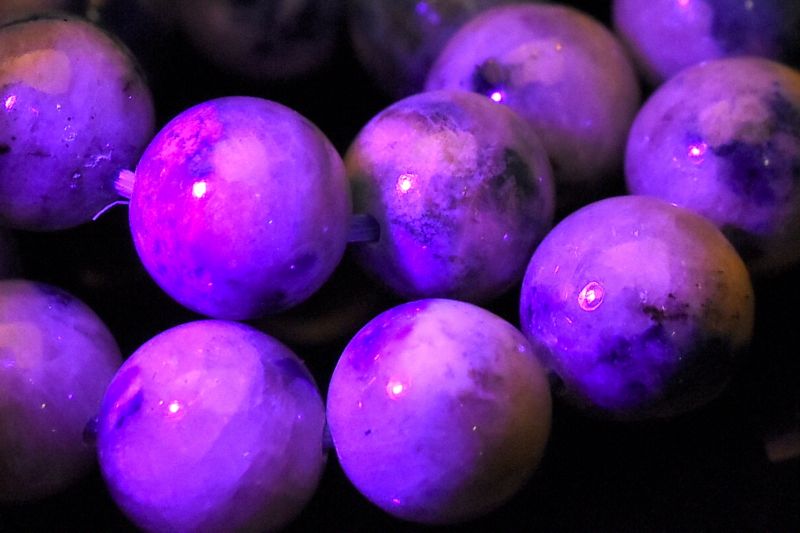 ハックマナイトは、ソーダライト(方ソーダ石)の変種で、紫外線で色が変わるファトクロミズムという不思議な特徴を持つパワーストーンです。