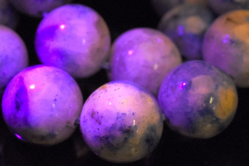同じファトクロミズムの特徴をもつ石たちの中でも、ハックマナイトは紫外線を当ててから一定時間変色が持続するという珍しい性質があり、コレクターの間でも高い人気を誇ってます。
