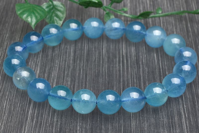 【1点物】潤い濃い青 アクアマリン 9.5mm ブレスレット _U7056