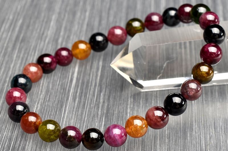 【1点物】透明濃色◇マルチカラー トルマリン 6.5mm ブレスレット _U7063