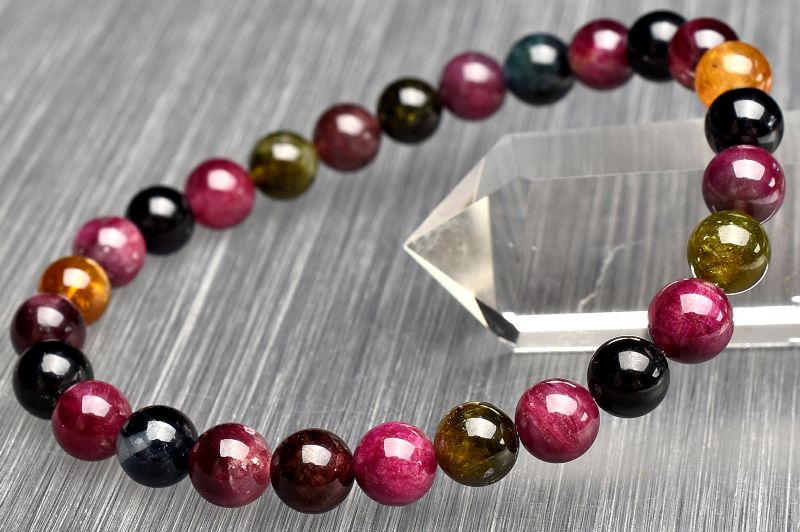 【1点物】透明濃色◇マルチカラー トルマリン 6.5mm ブレスレット _U7064