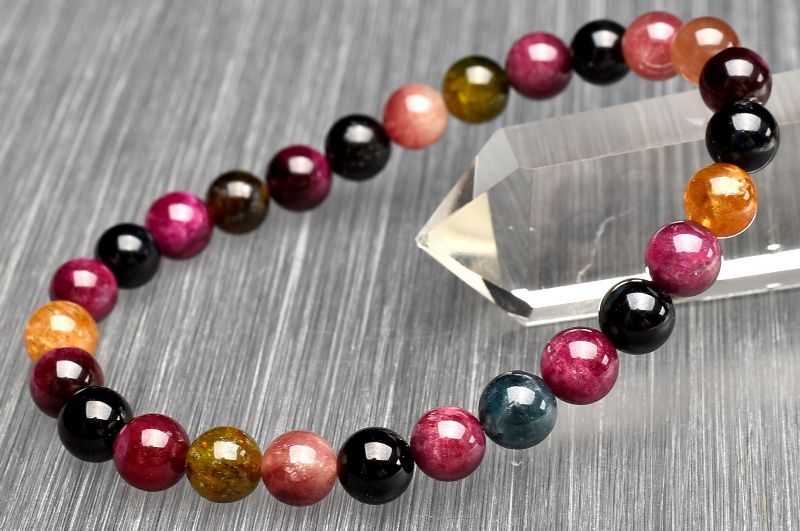 【1点物】透明濃色◇マルチカラー トルマリン 6.5mm ブレスレット _U7066