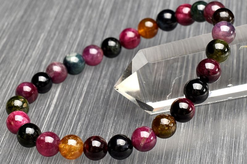 【1点物】透明濃色◇マルチカラー トルマリン 6.5mm ブレスレット _U7067