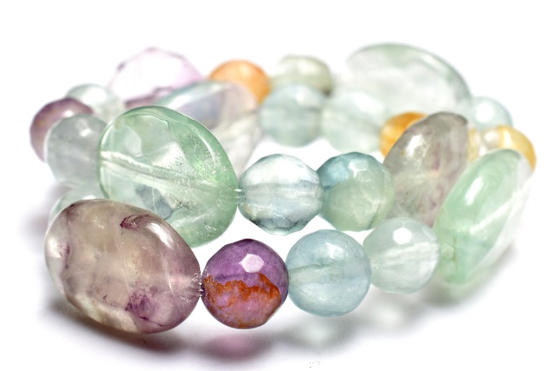 1つの石が複数の色を持つバイカラーのものもあり、「レインボーフローライト」と呼ばれます。