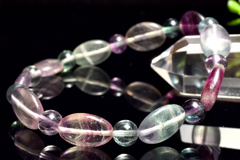 1つの石が複数の色を持つバイカラーのものもあり、「レインボーフローライト」と呼ばれます。