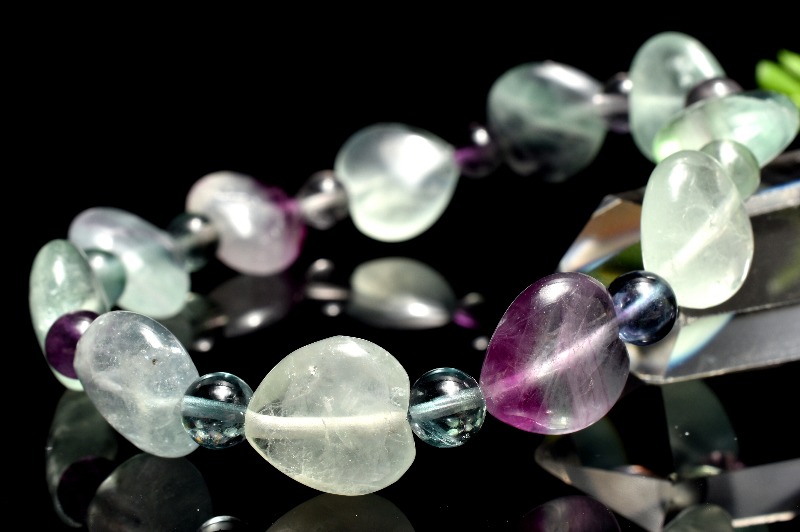 1つの石が複数の色を持つバイカラーのものもあり、「レインボーフローライト」と呼ばれます。