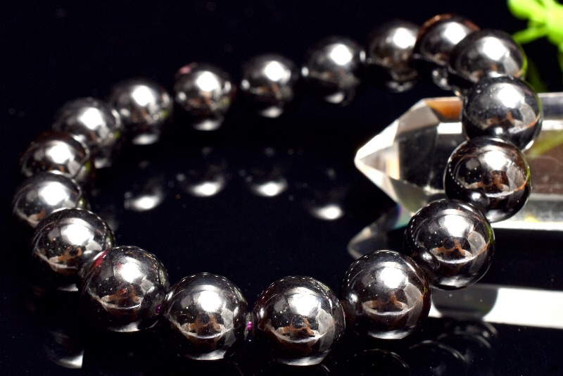 【1点物】メタリック ブラックアイアンスギライト(杉石) 11-11.5mm ブレスレット _MA6466