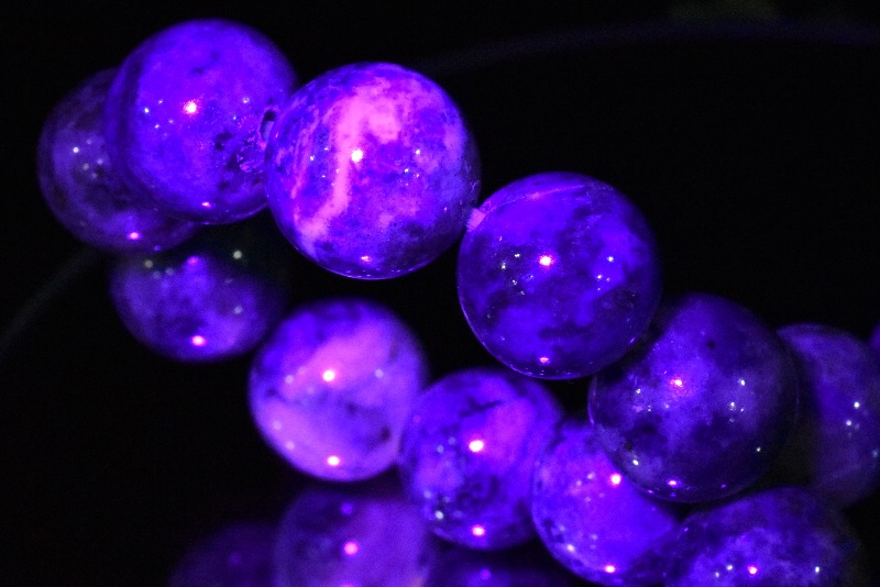 ハックマナイトは、ソーダライト(方ソーダ石)の変種で、紫外線で色が変わるファトクロミズムという不思議な特徴を持つパワーストーンです。