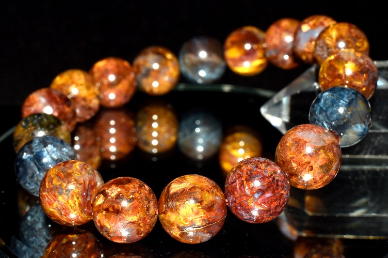 一般的にはタイガーアイ系の茶褐色が多いですが、ブルータイガーの青系もあり、茶と青の混じったものもあります。