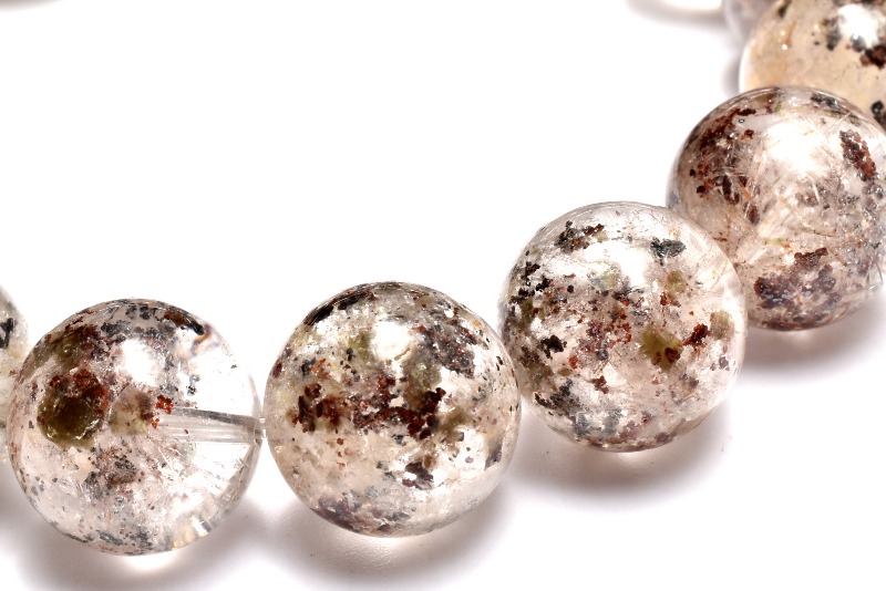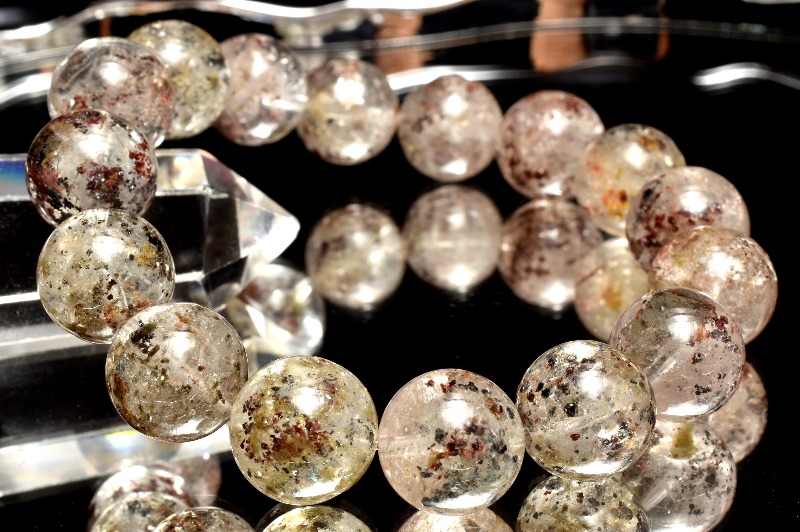 【1点物】ザンビア産◇グロッシュラーガーネット入り MIXエピドート&トルマリンインクォーツ 13mm ブレスレット _MA6581