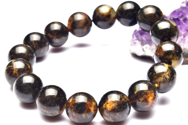 【1点物】ロシア産 アンバー琥珀(薬珀) 13.5mm ブレスレット _MA6671