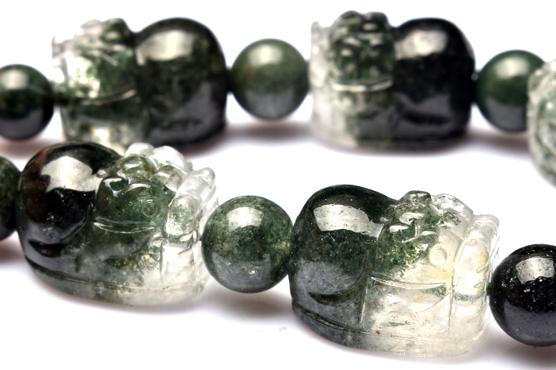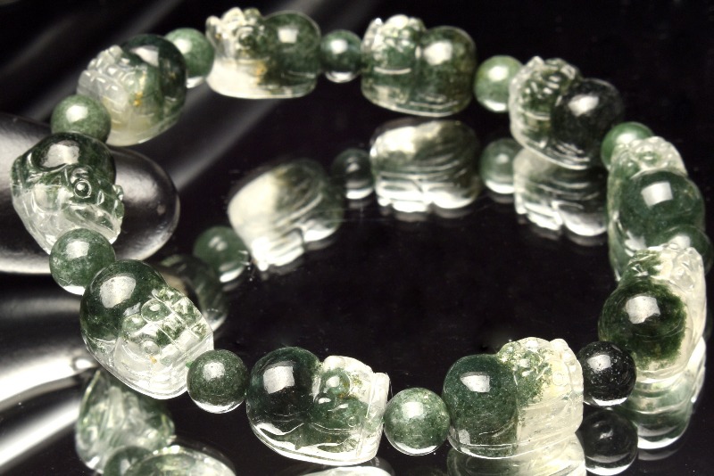 【1点物】半々タイプ◇繊細彫刻 グリーンガーデンクォーツ 12.5-13.5x9-9.5(丸玉6-6.5)mm 貔貅彫刻 ブレスレット _MA6692