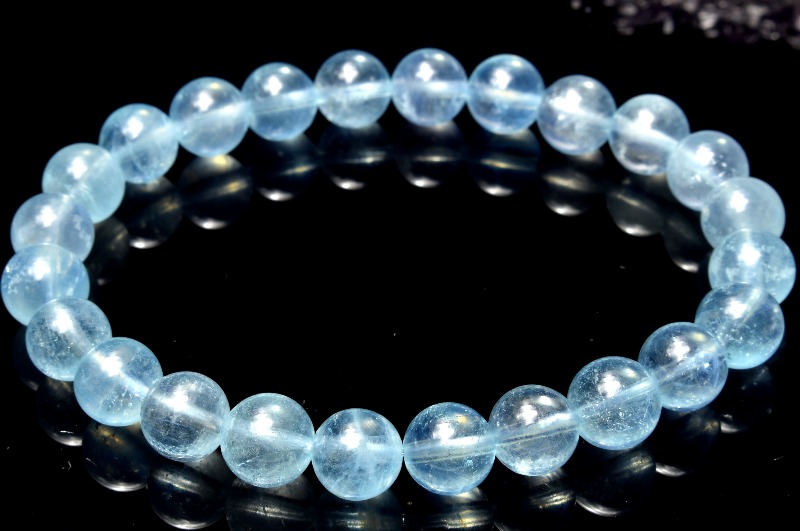 【1点物】キラキラAAA☆新疆ウイグル産 アクアマリン 7.5mm ブレスレット _MA6698